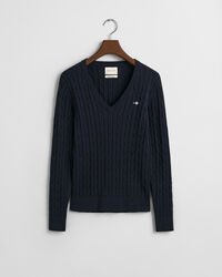 Der Pullover mit Zopfmuster ist ein Klassiker der American Sportswear. Das von den Aran-Inseln und irischen Seemannspullovern inspirierte Design erfreut sich seit jeher großer Beliebtheit, ob bei Hollywood-Filmstars oder Studenten auf der ganzen Welt. Unser schmal geschnittener Gant Damen Pullover aus Baumwolle mit leichtem Stretch ist eine makellose, vielseitige Variante mit V-Ausschnitt, Rippenbündchen und unserer charakteristischen Wappen-Grafikstickerei auf der Brust. Es gibt ihn in dieser Saison in verschiedenen neutralen oder leuchtenden Farben, also legen Sie sich am besten gleich mehrere zu.
